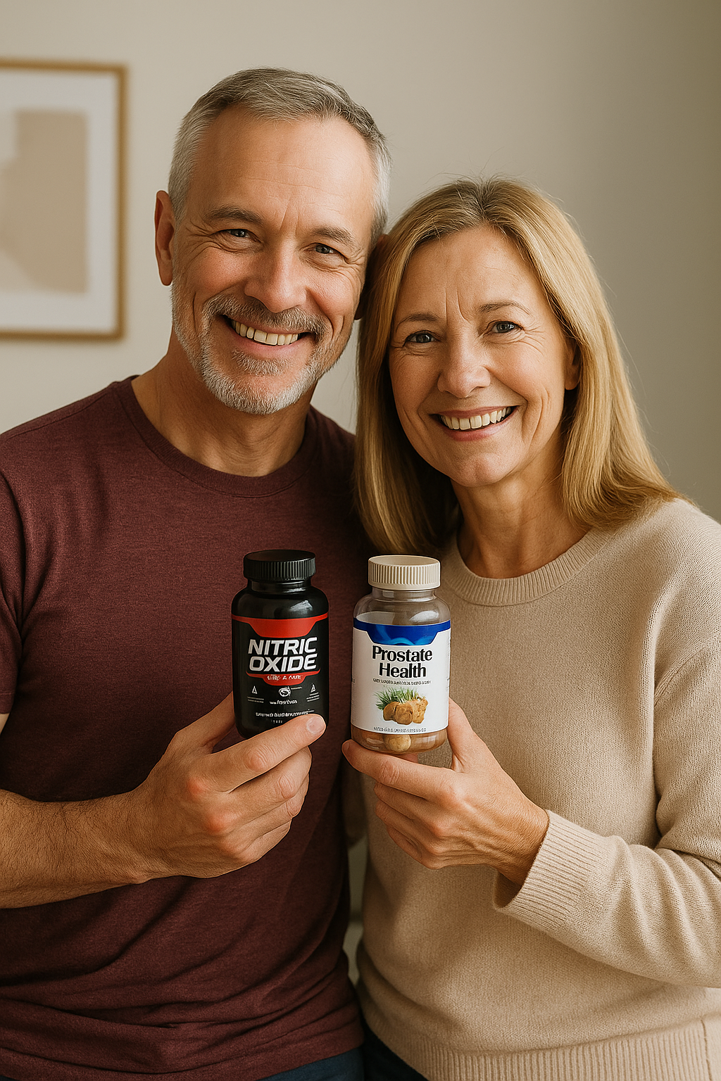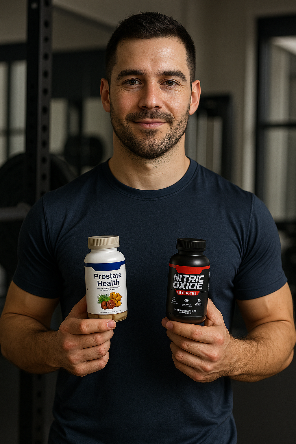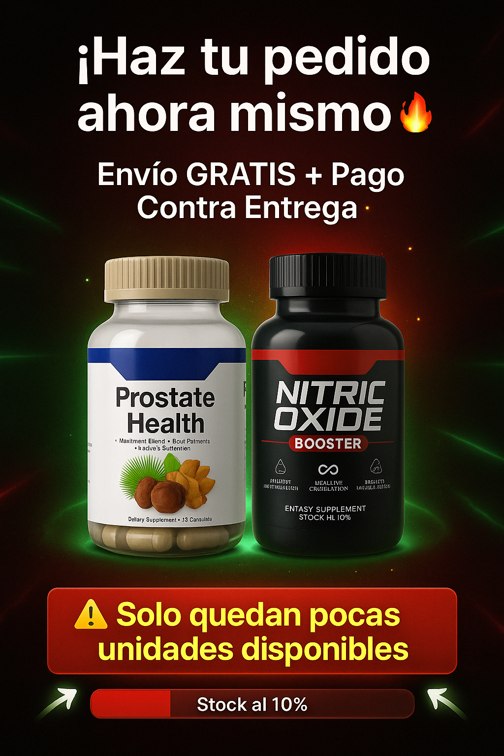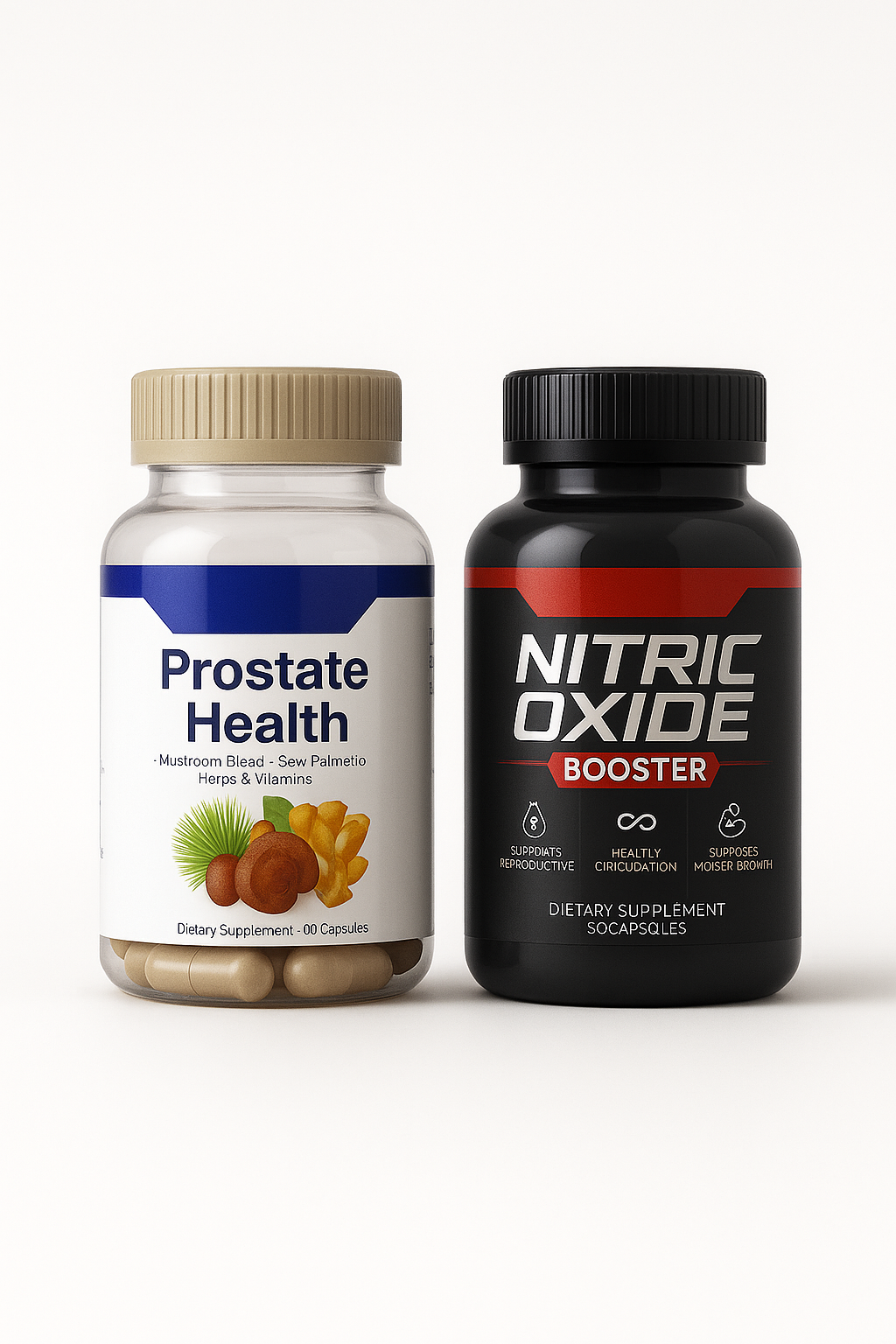 Prostate Health protege la próstata y regula la función urinaria; Nitric Oxide mejora la circulación y la oxigenación muscular. Juntos te dan salud + energía.